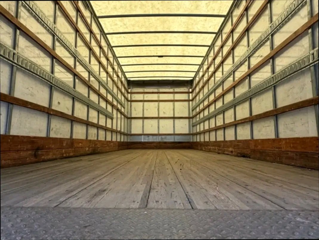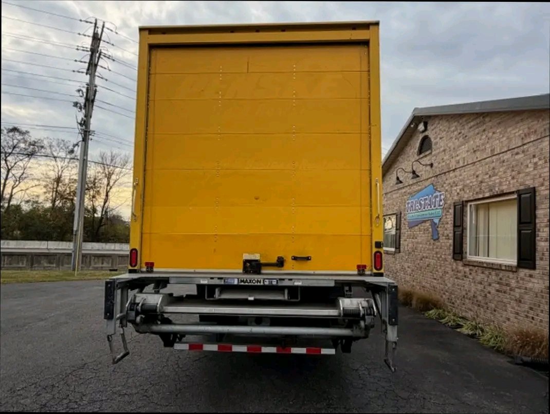 This sturdy box van truck is ready for work. It features a powerful Cummins diesel engine, ample space, and a lift gate for easy loading.